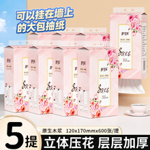 舒可乐 抽纸悬挂式大包整箱纸巾4层压花批发实惠装卫生纸 600张/提【5提装】